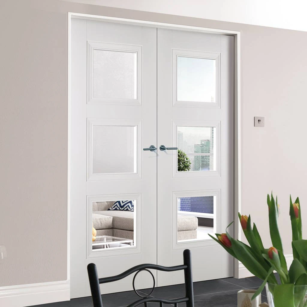The Amsterdam white glazed door pair is designed for people who want something different to a natural wood or white finish. A fashionable shade of white will add a luxurious touch to both more traditional and contemporary interiors.