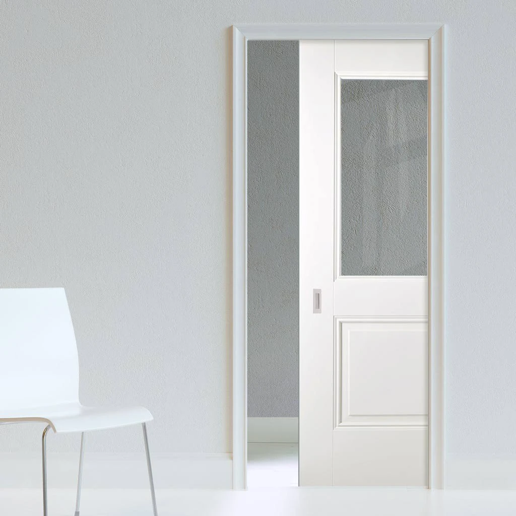 London Single Evokit Pocket Door - Clear Glass - White Primed