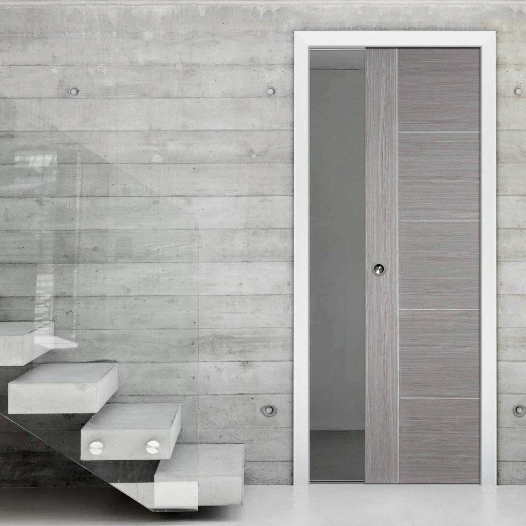 Our all new Bespoke Interior Single Pocket Door Systems have free delivery as standard, these pocket doors come with full fitting instructions and the door system allows you to slide the door straight in to a cavity in a preformed wall aperture, the system incorporates a galvanised steel cassette section and a track set with all fittings, soft close is also included. The door may be supplied with full decoration but no decor is included to the cassette system parts or its frame, check each door as you browse for the exact details.