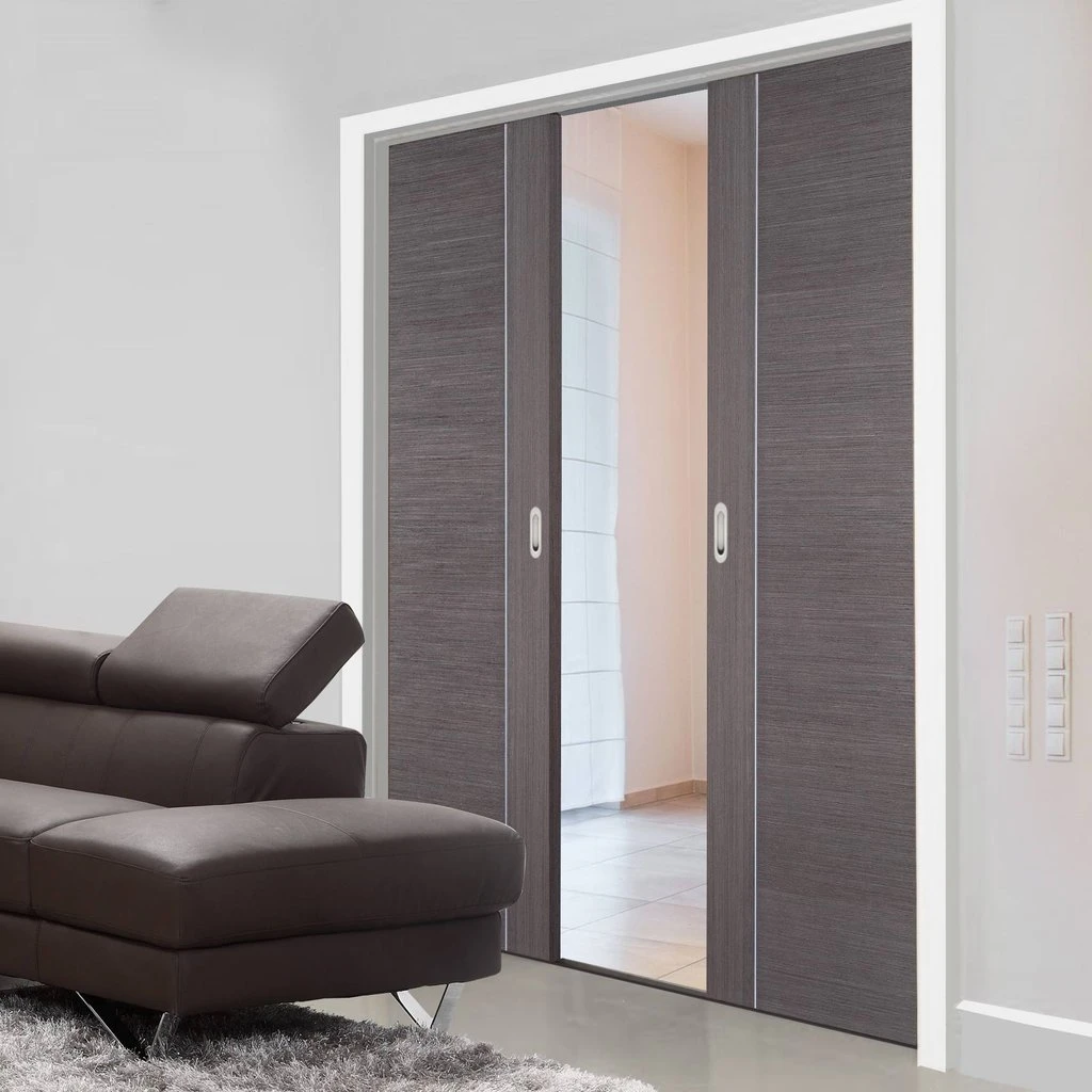 Price: The price quoted is for the door(s), pocket system frame, all track fittings and soft closer, but no handles, any glass shown is pre-installed in the doors.