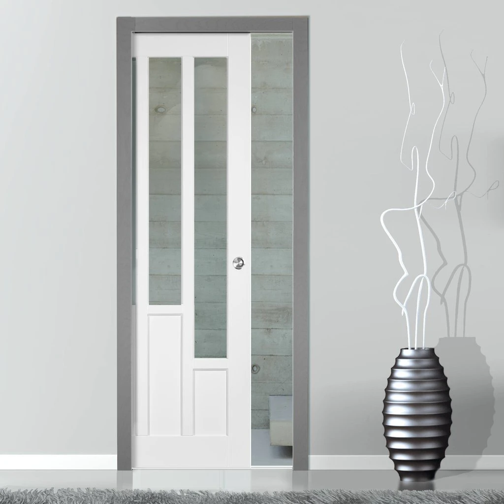 Our all new Interior Single Pocket Door Systems have free delivery as standard, these pocket doors come with full fitting instructions and the door system allows you to slide the door straight in to a cavity in a preformed wall aperture, the system incorporates a galvanised steel cassette section and a track set with all fittings, soft close is also included. The door may be supplied with full decoration but no decor is included to the cassette system parts or its frame, check each door as you browse for the exact details.