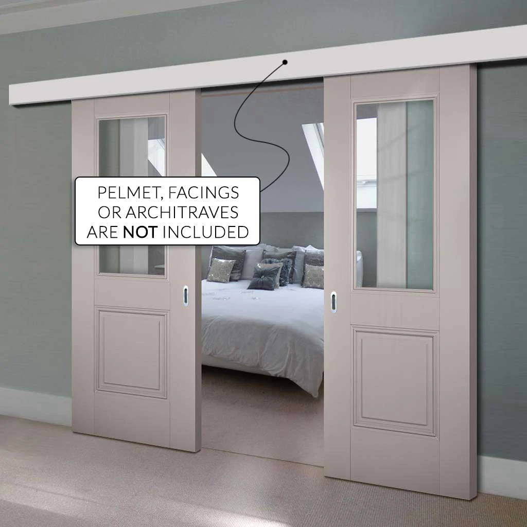 Price: Includes track, guides, track stops, soft close mechanism, main screws/fixings, but does not include any architrave extension plates to carry the track or any pelmet top and face.