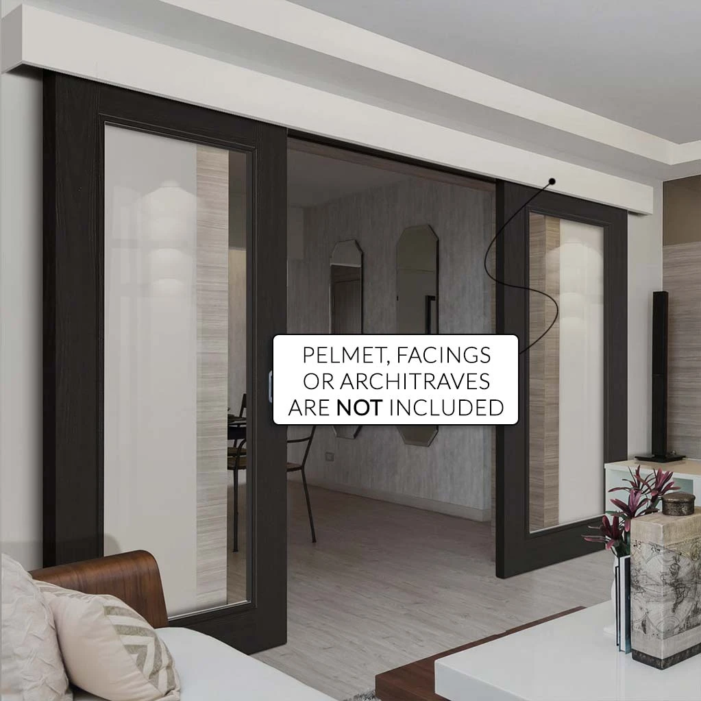 Price: Includes track, guides, track stops, soft close mechanism, main screws/fixings, but does not include any architrave extension plates to carry the track or any pelmet top and face.