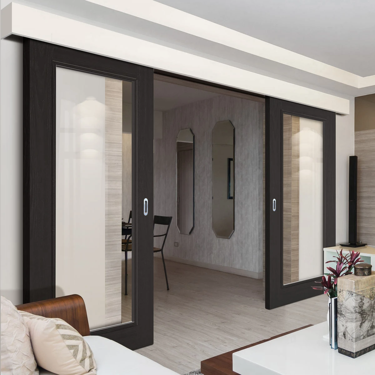 Any multiple door product, EG; door pairs, sliding double doors, folding doors or double pocket doors are individual doors put together as a product visual, please note we cannot guarantee that the veneers and colour will be an exact match but every care will be taken to provide you with the closest match possible.