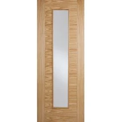 Vancouver Long Light Oak Internal Door Pair – Clear Glass – Prefinished