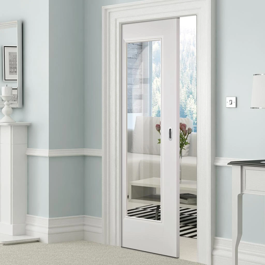 Eindhoven 1L Single Evokit Pocket Door - Clear Glass - White Primed - Image 11