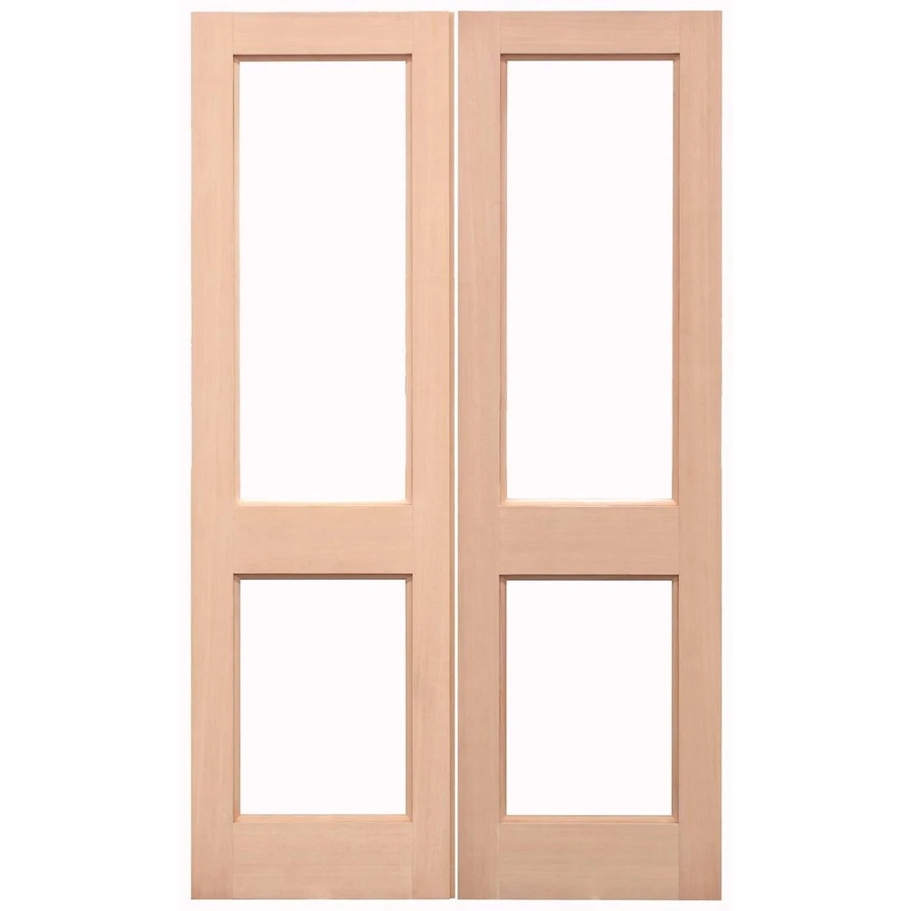 Another great addition, the 2 pane 2XGG style exterior hemlock door pair is engineered and faced with a real hemlock wood veneer and is supplied un-glazed ready for you the customer to fit their own glass.