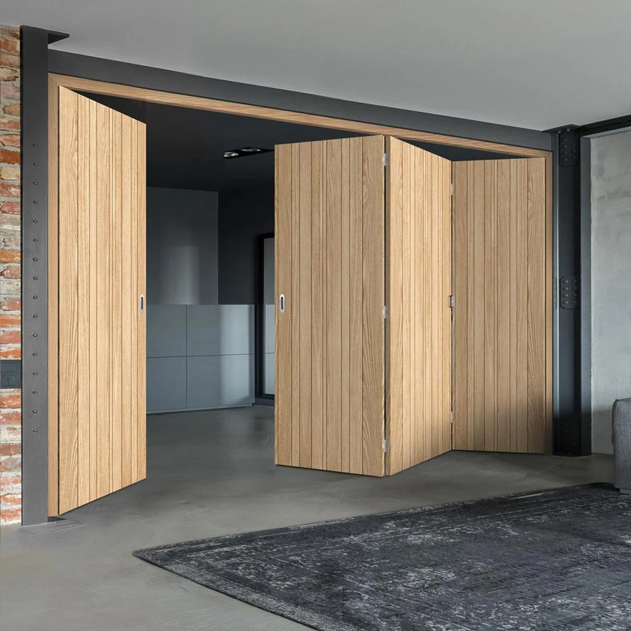 Four Folding Doors & Frame Kit – Montreal Oak Flush Internal 3+1 – Prefinished