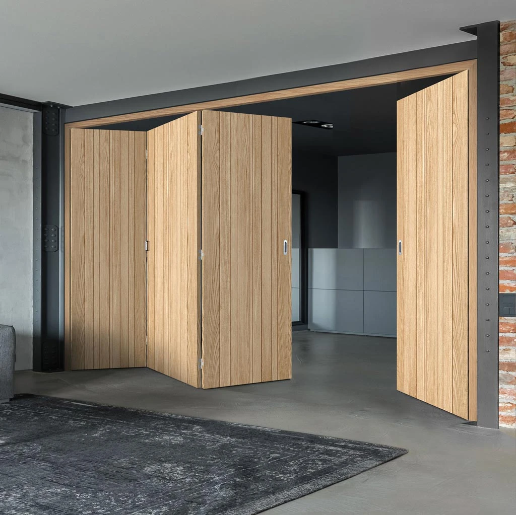 Four Folding Doors & Frame Kit - Montreal Oak Flush Internal 3+1 - Prefinished -LPD Door hinges thrufold directdoors interior design 61e9b43e 3534 4ac4 944d 4bd025a13086