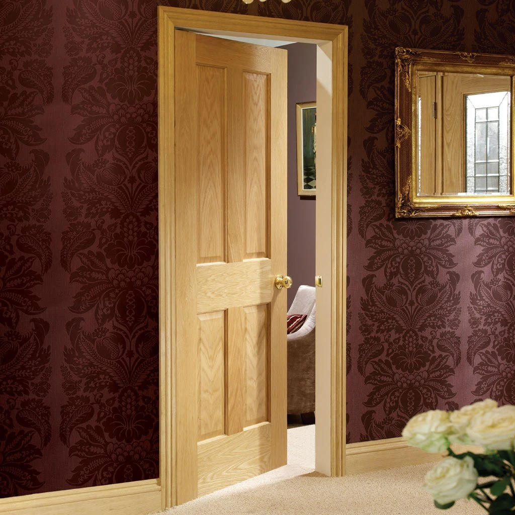 The items making this kit are a mix of unfinished oak and prefinished veneered oak, the door is a prefinished (FULLY DECORATED) oak veneer, the frame and architraves are oak without decoration but can be stained to compliment the door.