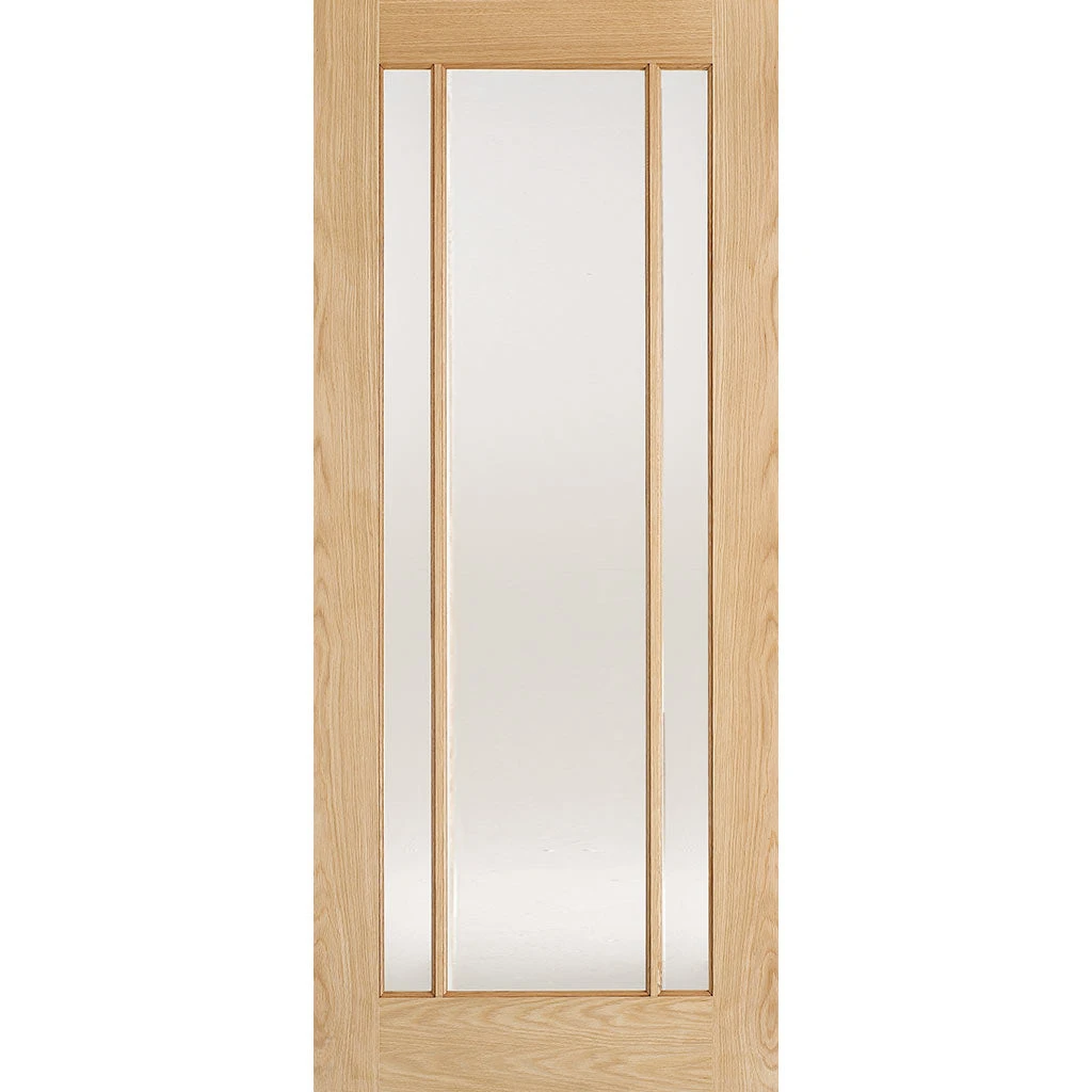 The Lincoln Oak Door has a solid core with the veneer on top to provide a 1st class door as standard with frosted safety glass.