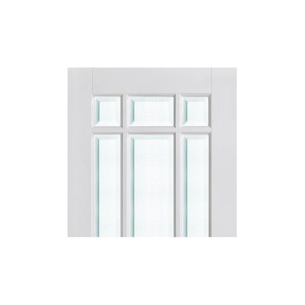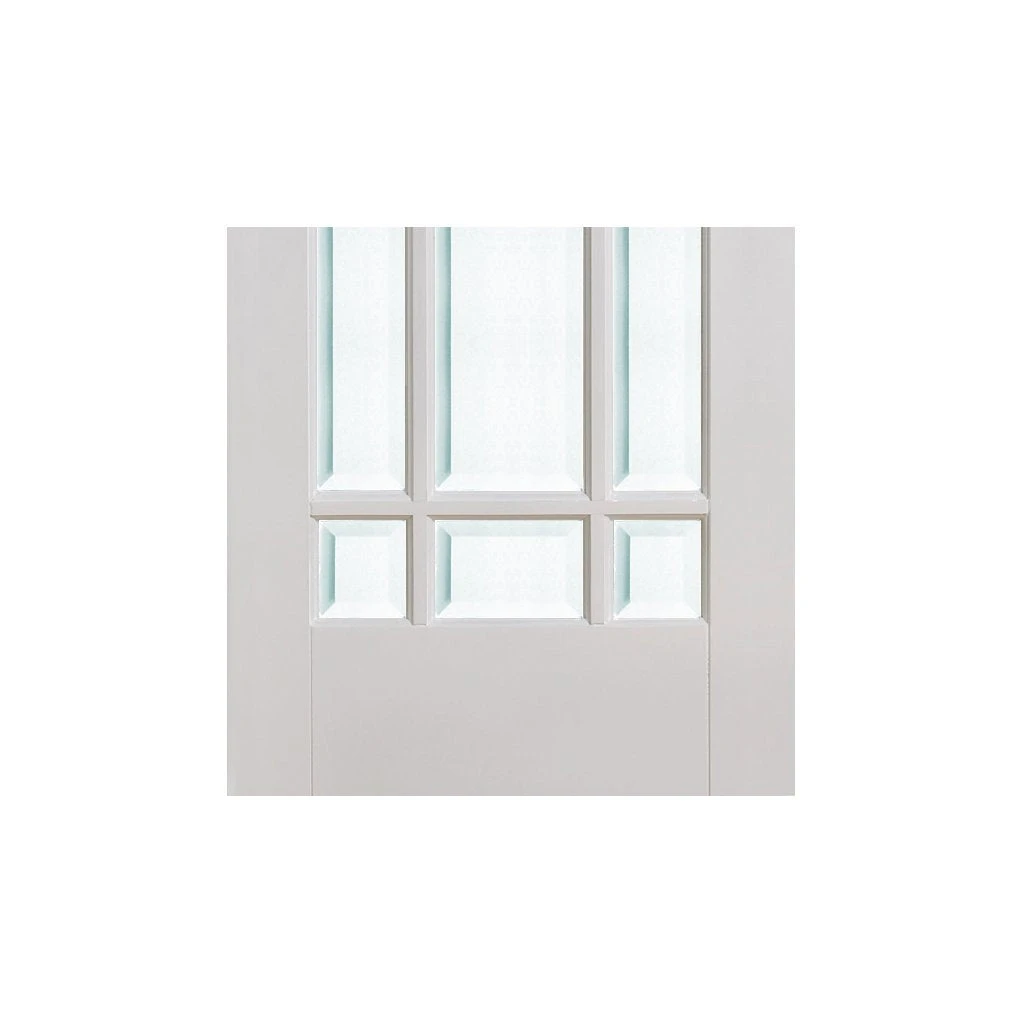 Manhattan White Primed Door Pair – Toughened Bevelled Clear Safety Glass Solid Core White primed Interior French Doors with smooth finish, also available as W4 with a frame kit or as the larger W6 and W8 styles with sidelights & Frame kit, this item would be supplied without the architraves shown in the image. Delivery is free on the uk mainland.