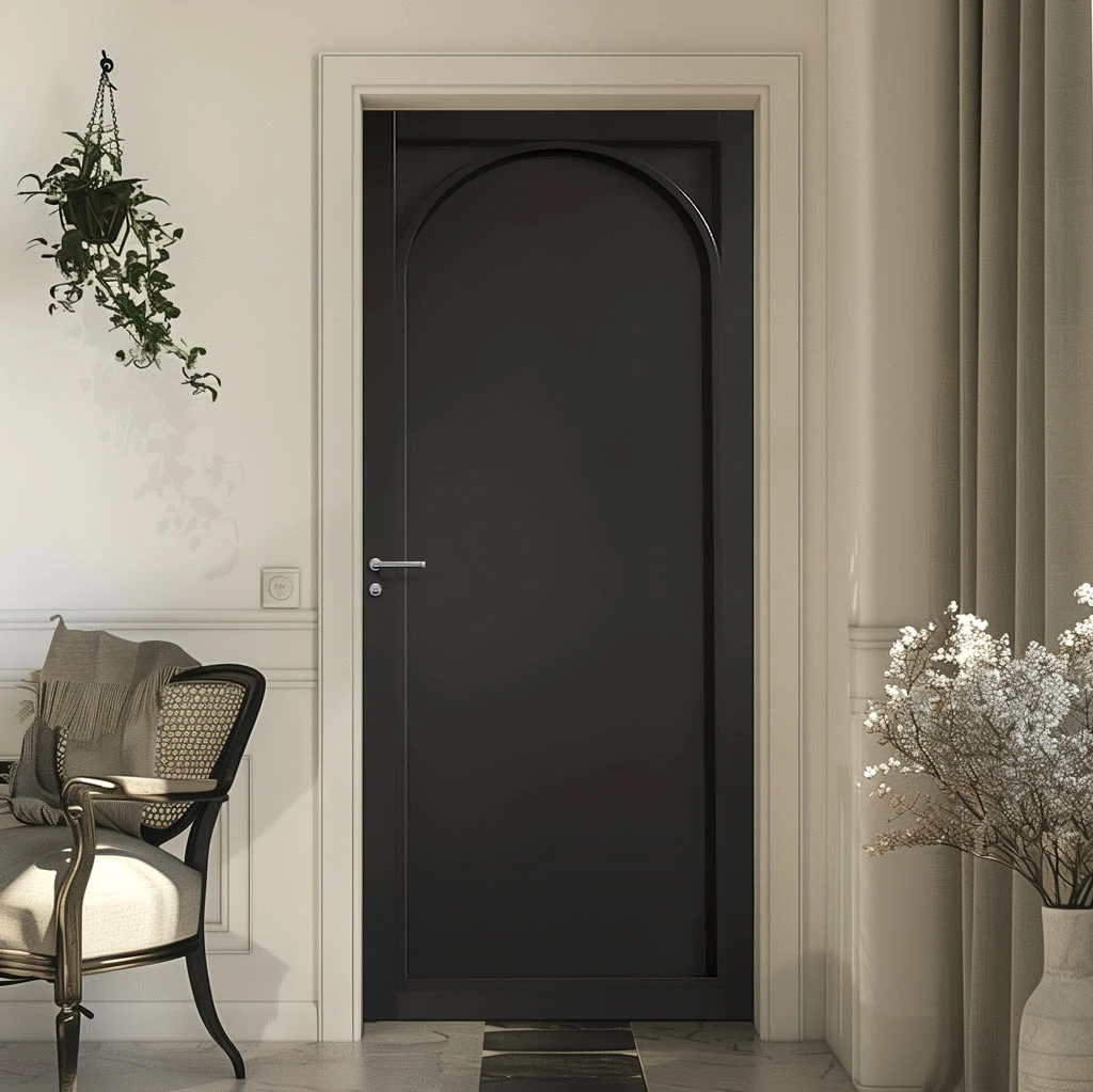 Expertly crafted with a luxurious pre-finished black hue, the Melrose door boasts a sophisticated arched design that complements any modern home. Its sturdy engineered core balances practicality and elegance, making it the ideal choice for your home’s interior.
