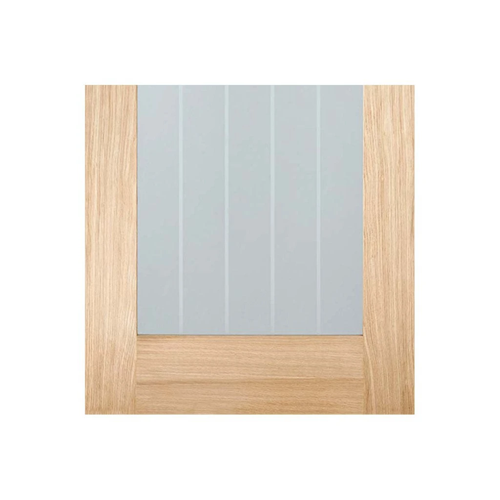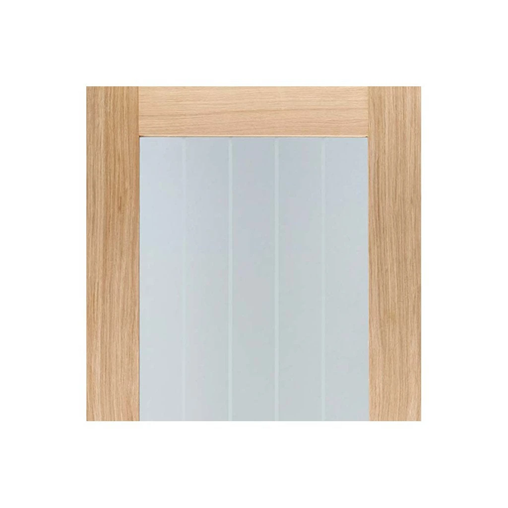 This Mexicano oak door pair has clear safety glass with etched lines as standard.