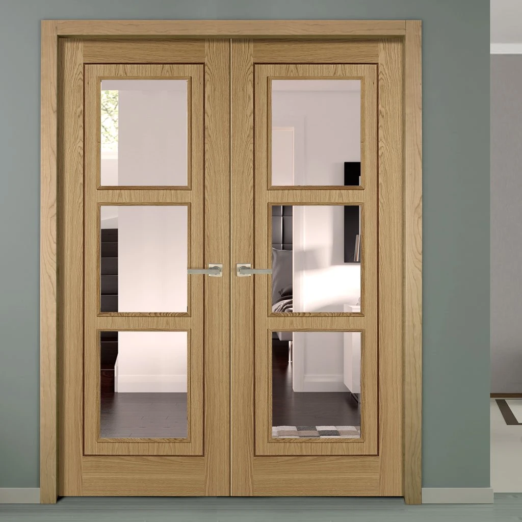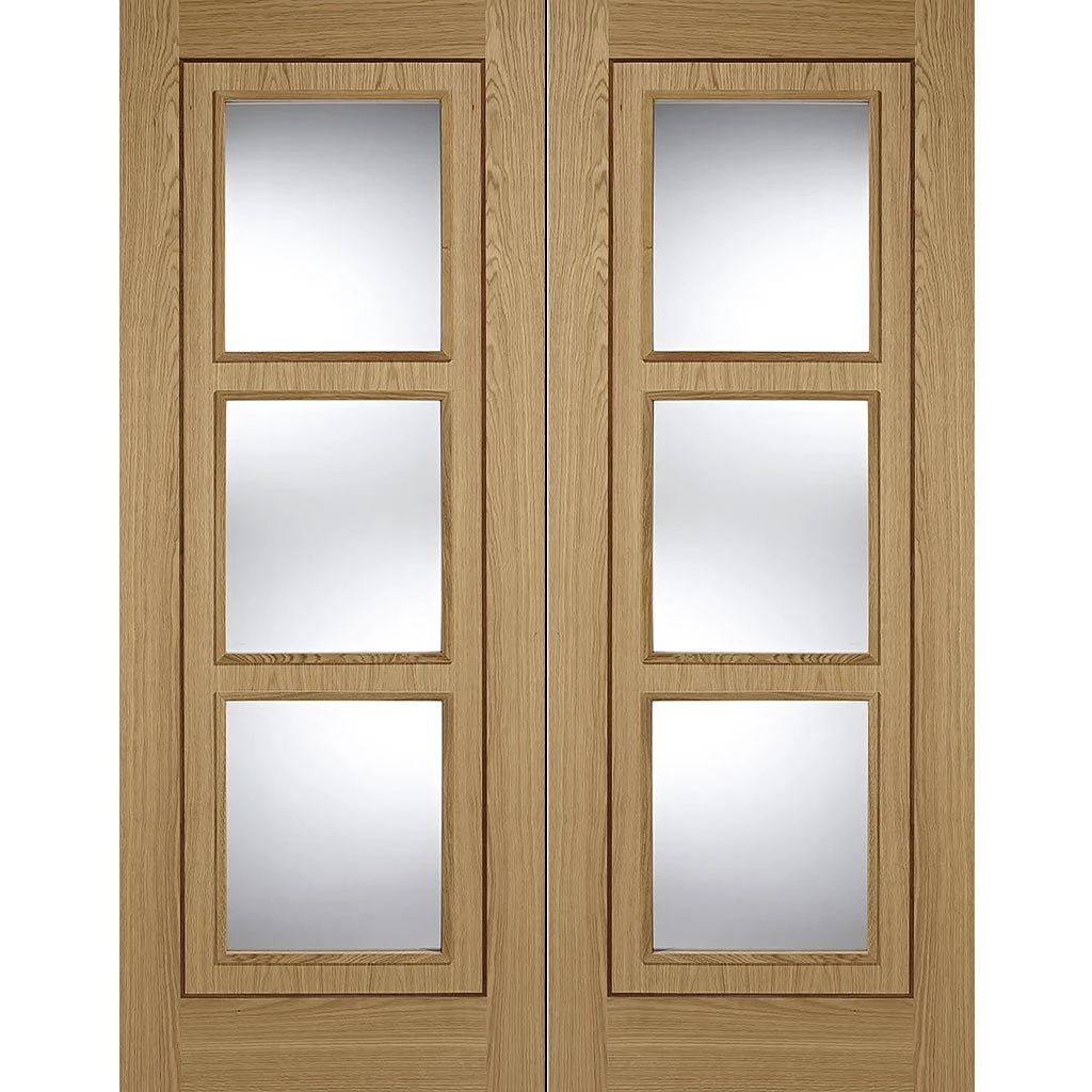 The stunning looking 3L Inlay, a new style door pair, the Inlay oak 3L door pair with clear glass.