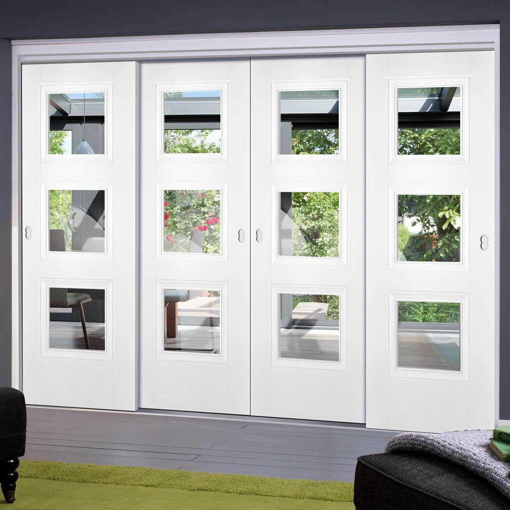 Thrufold Frames: All Thruslide MDF frame items are supplied in kit form without fixings, not assembled, glass is pre-installed in the doors where there are glass apertures.