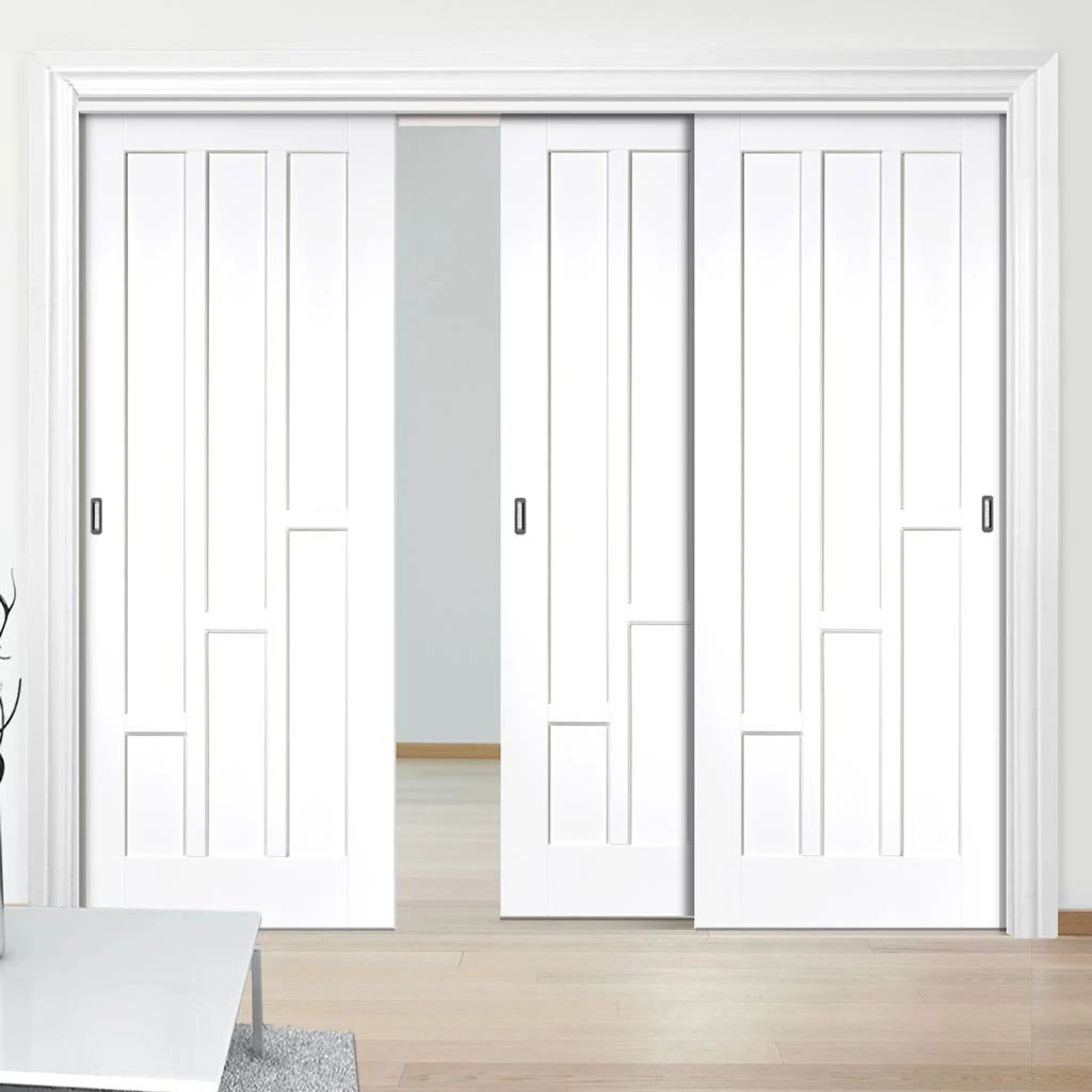 - All doors can open left or right but please refer to the diagrams and PDF for more clarity. You simply decide when you install them and discard the track door stops that can be used to keep a door or doors in the fixed position should you so wish.