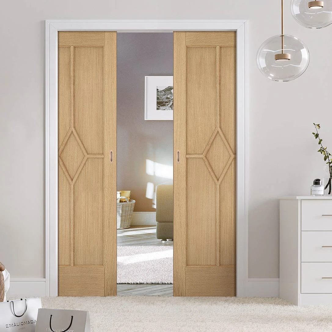 Reims Diamond 5 Panel Oak Double Evokit Pocket Doors - Prefinished -LPD Door simultaneous opener pocket doors directdoors ermetika double doors 4cfb4871 3f38 42c7 a39d a1bb867360eb