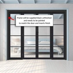 ThruEasi Room Divider – Tribeca 3 Pane Black Primed Clear Glass Unfinished Door With Single Side