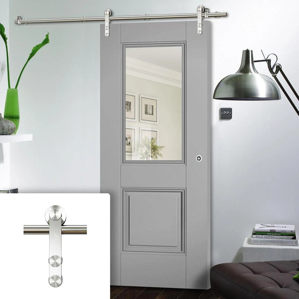 - A high-quality front-mounted stainless steel sliding track system, the front-mounted track is screwed to the front of the door which gives the whole system a very sleek look.