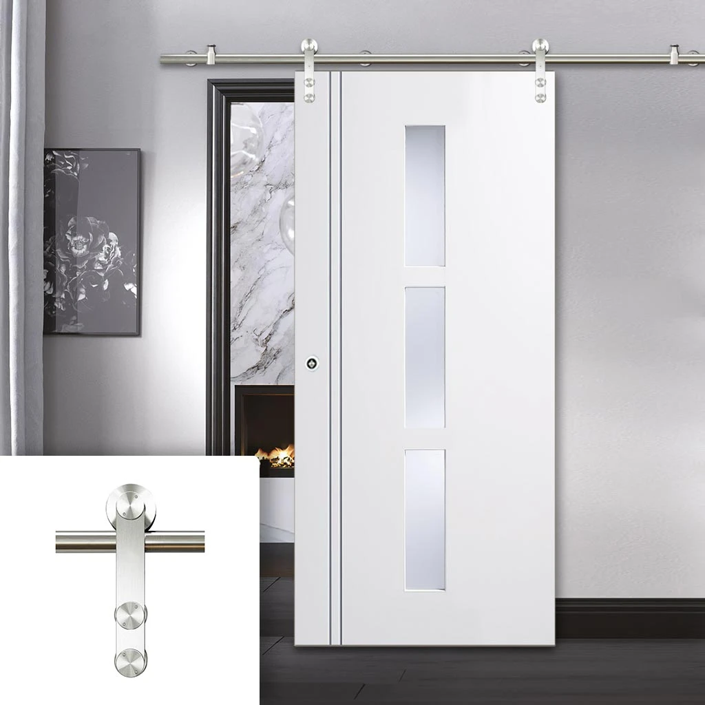 - A high-quality front-mounted stainless steel sliding track system, the front-mounted track is screwed to the front of the door which gives the whole system a very sleek look.