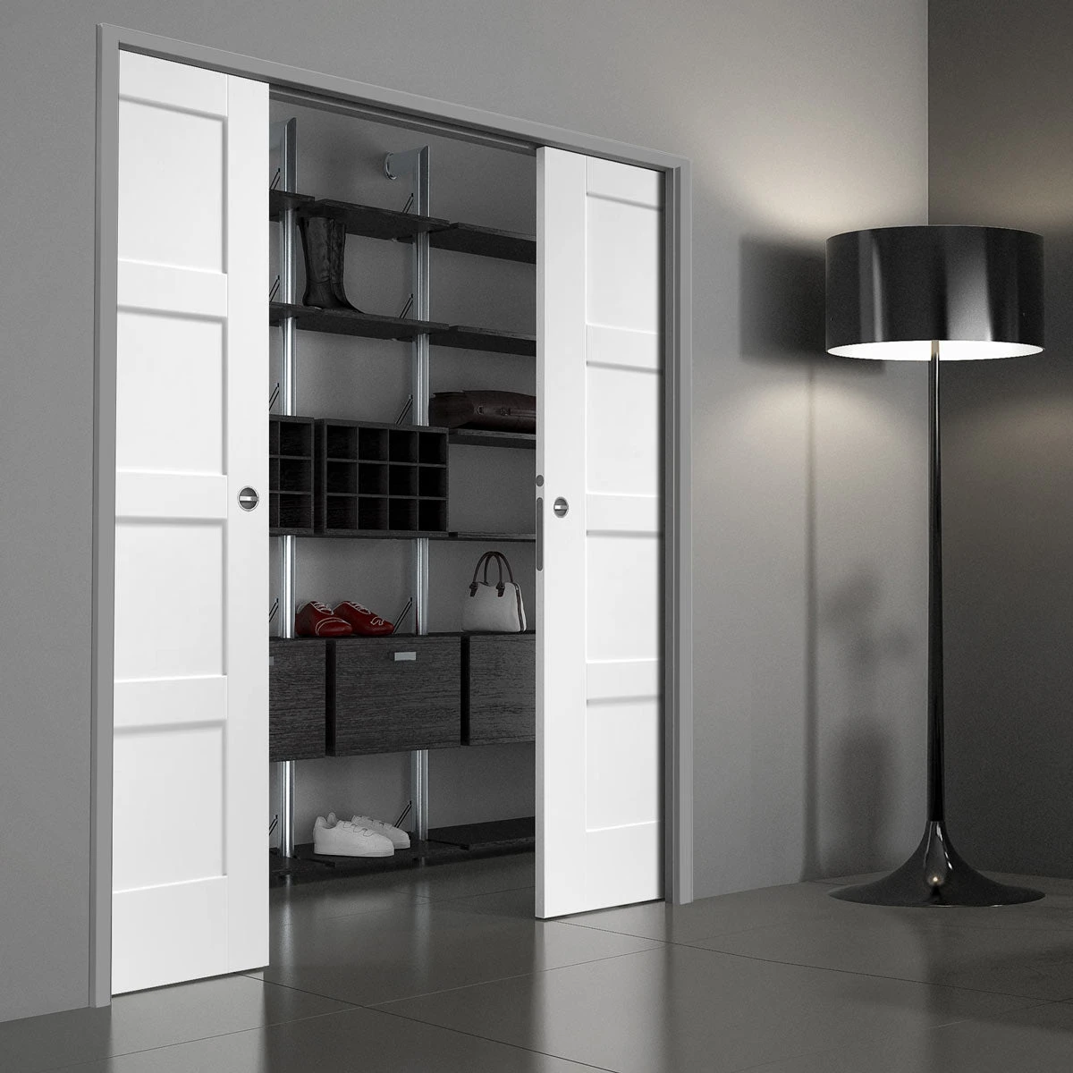 Shaker 4P Double Evokit Pocket Door - White Primed -LPD Door simultaneous opener pocket doors directdoors ermetika double doors 866b69d3 1560 420d b704 25fb481bff1c