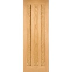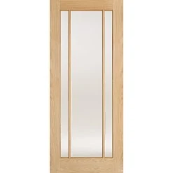 Premium Single Sliding Door & Wall Track – Lincoln 3 Pane Oak Door – Frosted Glass – Unfinished