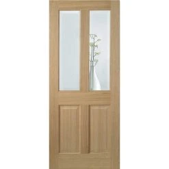 Top Mounted Black Sliding Track & Door – Belize Oak Door – Silkscreen Etched Glass – Prefinished