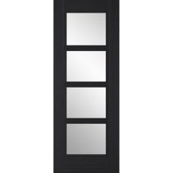 Vancouver Charcoal Black 4L Internal Door Pair – Raised Mouldings – Clear Glass – Prefinished
