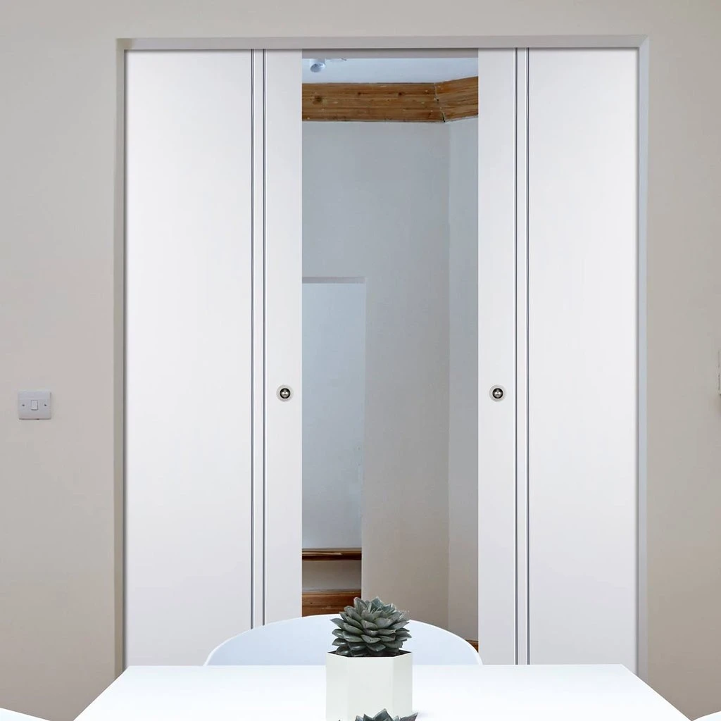 Our all new Ermetika interior double pocket door systems have a free delivery as standard, these pocket doors come with full fitting instructions and the door system allows you to slide the door straight in to a cavity in a preformed wall aperture, the system incorporates a galvanised steel cassette section and a track set with all fittings, the door may be supplied with full decoration but no decor is included to the cassette system parts or its frame, check each door as you browse for the exact details.