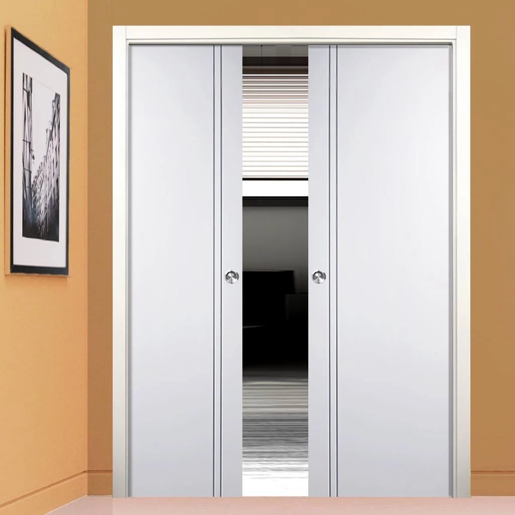 Our all new Ermetika interior double pocket door systems have a free delivery as standard, these pocket doors come with full fitting instructions and the door system allows you to slide the doors straight in to a cavity in a preformed wall aperture, the system incorporates a galvanised steel cassette section and a track set with all fittings, soft close is also included. The door may be supplied with full decoration but no decor is included to the cassette system parts or its frame, check each door as you browse for the exact details.