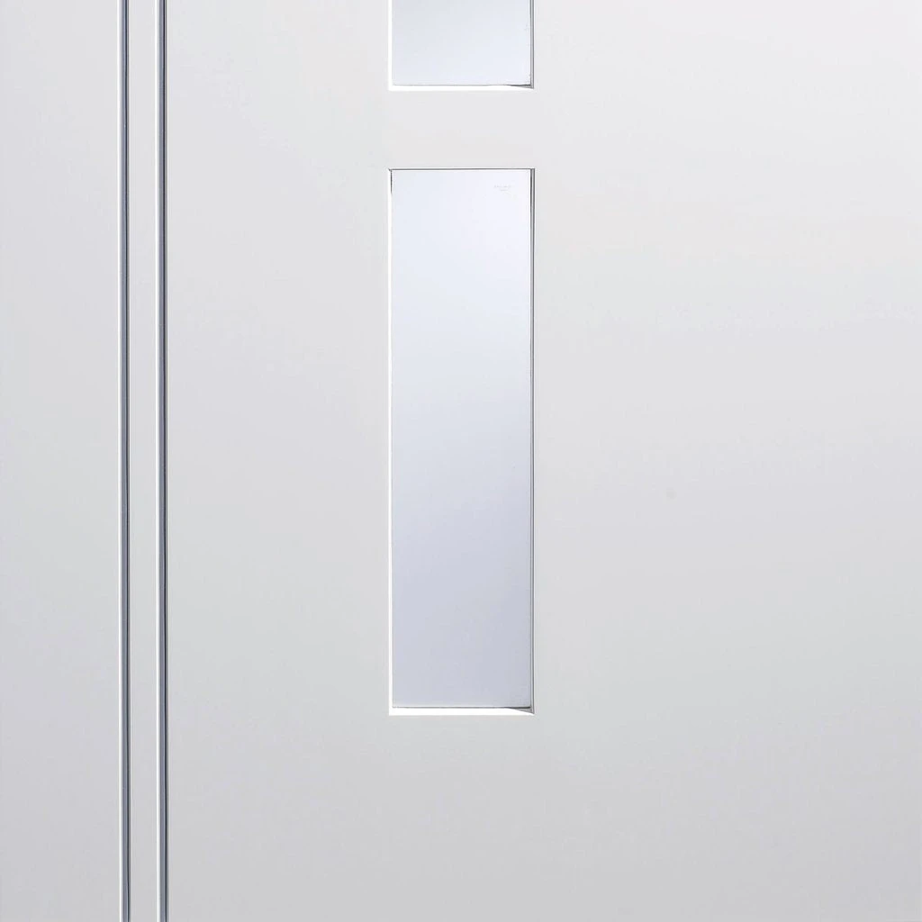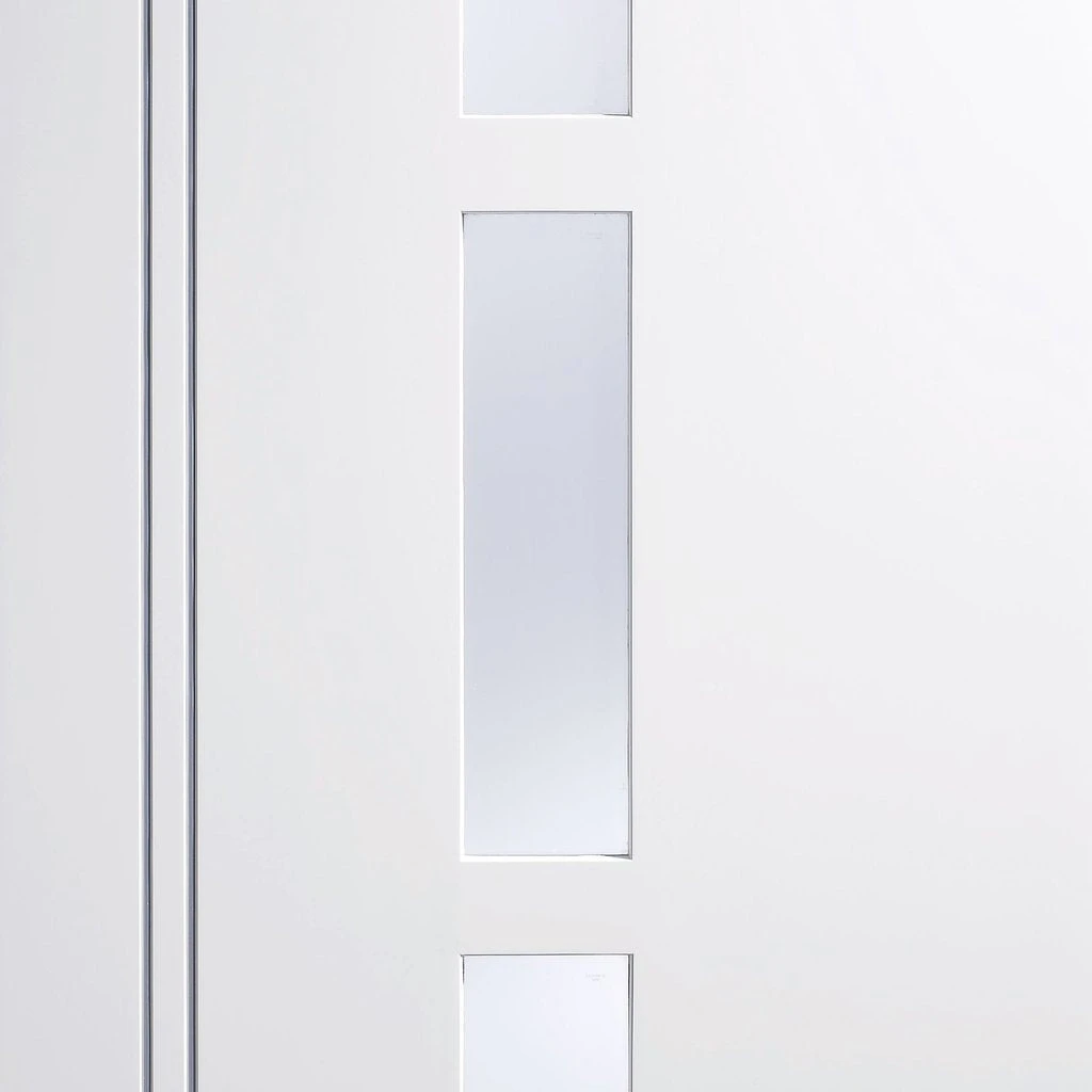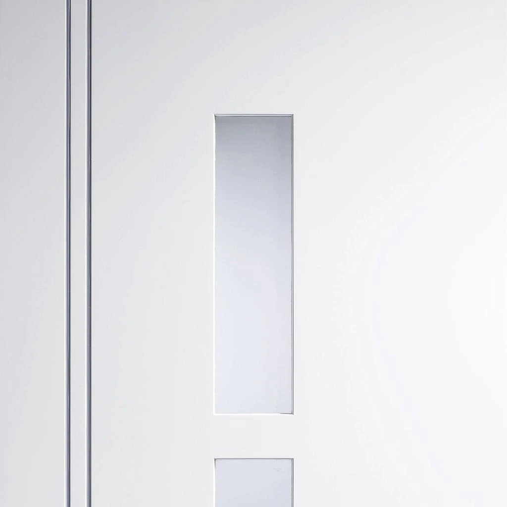 A; The Sierra Blanco Door door has a solid core with the mdf on top to provide a 1st class pre-painted door, laminated frosted glass completes the job.