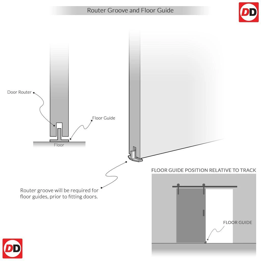 - Door will require a groove to be routered in the bottom of it to suit the floor guide, no bottom track required in order to allow for a clear threshold so there is no trip hazard encountered with this track.