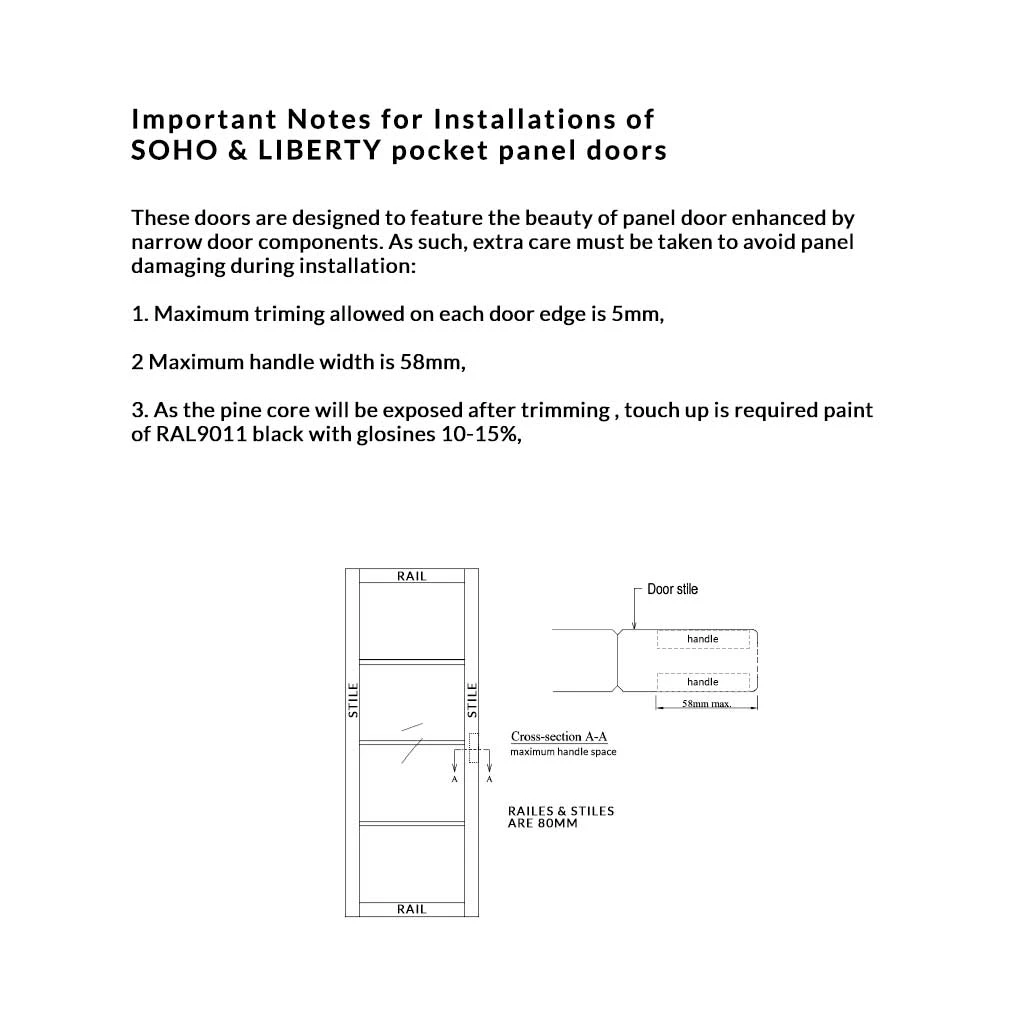 - Door will require a groove to be routered in the bottom of it to suit the floor guide, no bottom track required in order to allow for a clear threshold so there is no trip hazard encountered with this track.