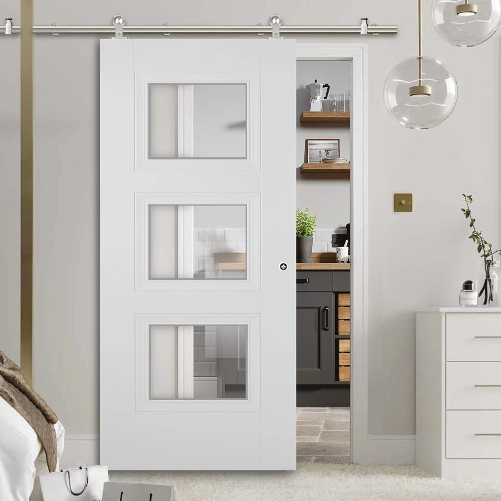 - A high-quality top mounted stainless steel sliding track system, the top-mounted track is screwed directly into the top of the door which gives the whole system a very sleek look.