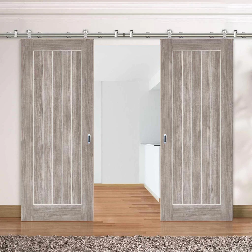- A high-quality top mounted stainless steel sliding track system, the top-mounted track is screwed directly into the top of the door which gives the whole system a very sleek look.