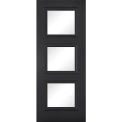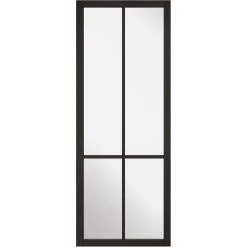Top Mounted Black Sliding Track & Double Door – Liberty 4 Pane Black Primed Doors – Clear Glass