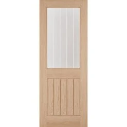 Top Mounted Stainless Steel Sliding Track & Door – 1930’s Oak Door – Frosted Glass – Unfinished