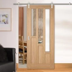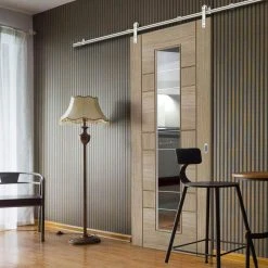 Saturn Tubular Stainless Steel Sliding Track & Catalonia Flush Oak Door – Prefinished