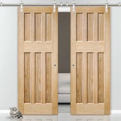 Saturn Tubular Stainless Steel Sliding Track & DX 60’s Nostalgia Oak Panel Double Door – Unfinished