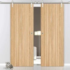Saturn Tubular Stainless Steel Sliding Track & Montreal Oak Flush Internal Double Door – Prefinished