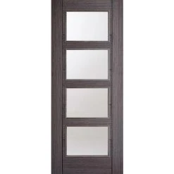 Saturn Tubular Stainless Steel Sliding Track & Regency 4 Panel Smoked Oak Door – Prefinished