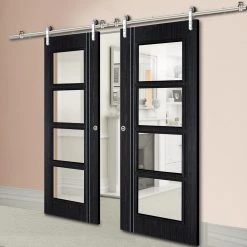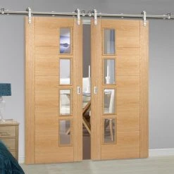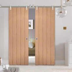 Saturn Tubular Stainless Steel Sliding Track & Wexford Oak Panel Double Door – Unfinished