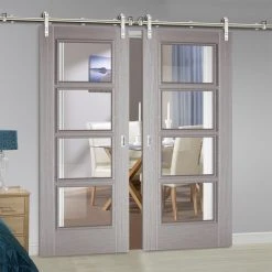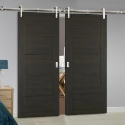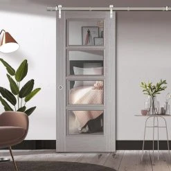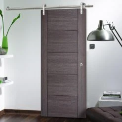 Saturn Tubular Stainless Steel Sliding Track & Vancouver Flush Ash Grey Door – Prefinished