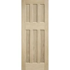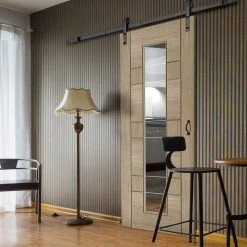 Single Sliding Door & Wagon Wheel Black Track – DX 60’s Nostalgia Oak Panel Door – Unfinished
