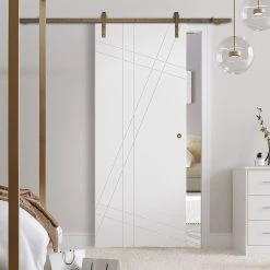 Single Sliding Door & Straight Antique Rust Track – Hastings Flush Door – White Primed