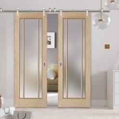 Saturn Tubular Stainless Steel Sliding Track & Sierra Blanco Door – Frosted Glass – White Painted