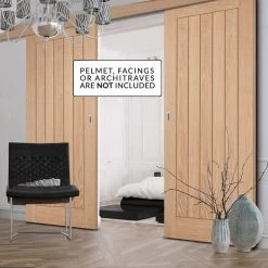 Bespoke Thruslide Surface Vancouver Oak 5P Flush Door – Sliding Door And Track Kit – Prefinished