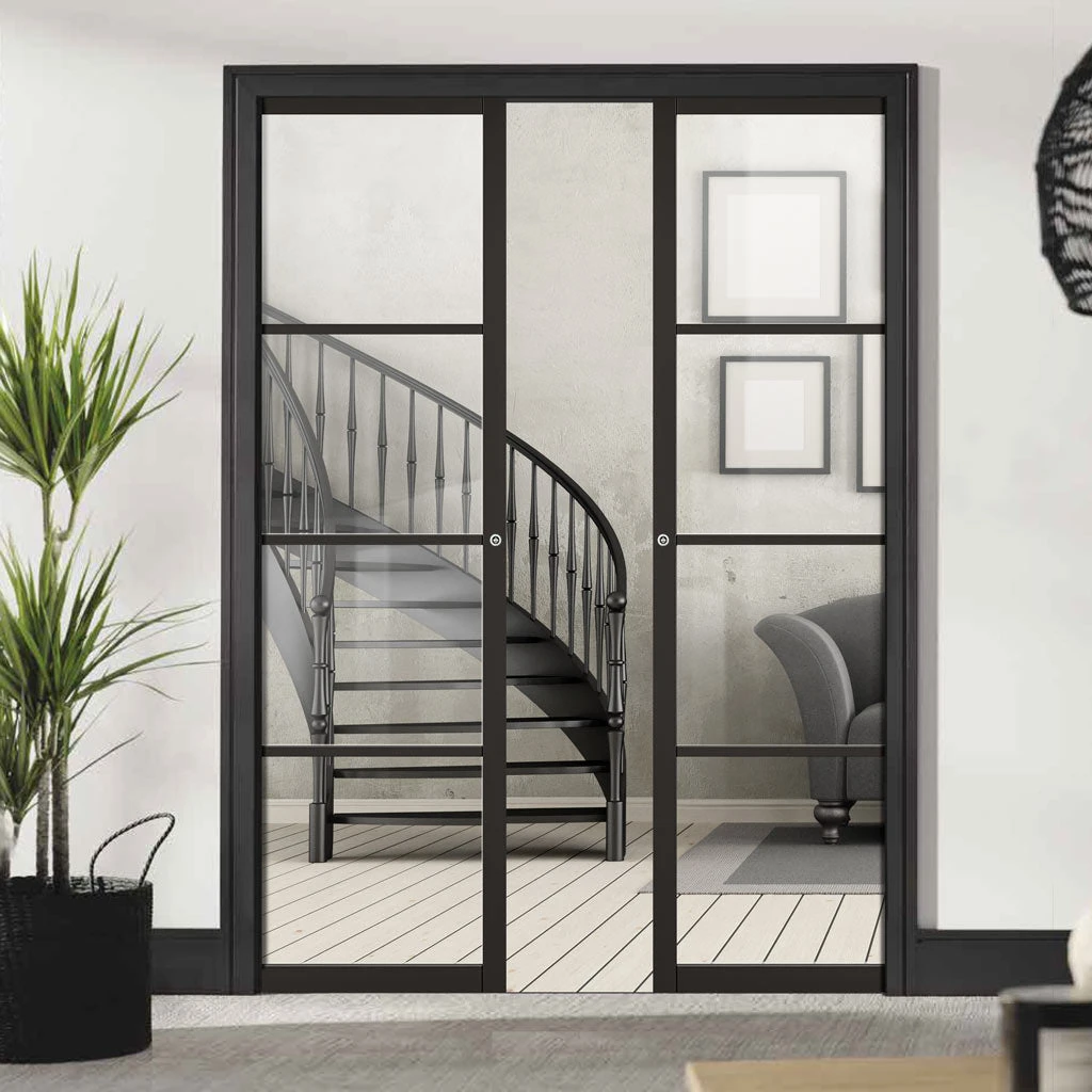Price: The price quoted is for the door(s), pocket system frame, all track fittings and soft closer, but no handles, any glass shown is pre-installed in the doors.