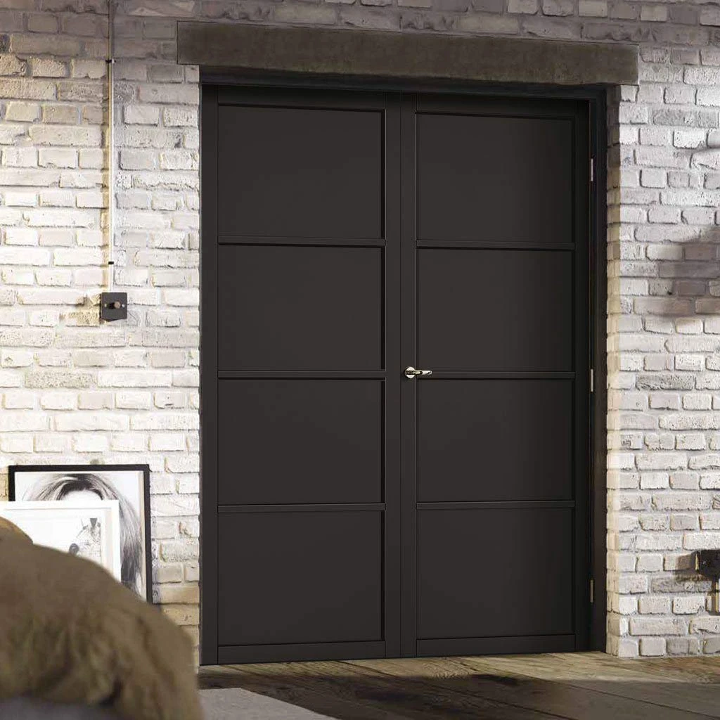 The Soho 4 Panel Black Primed Door Pair is ready to be treated and coloured in any style of your choice.